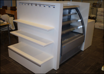 Valmistamme yritysten ja liiketilojen kalusteita mittatilaustyönä ja asennamme ne paikoilleen. Kauttamme myös taukokeittiöt.
